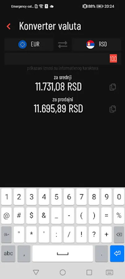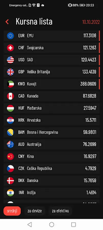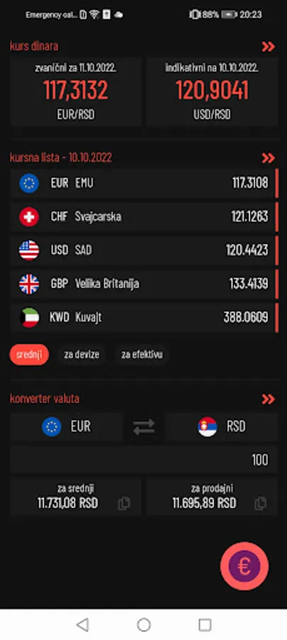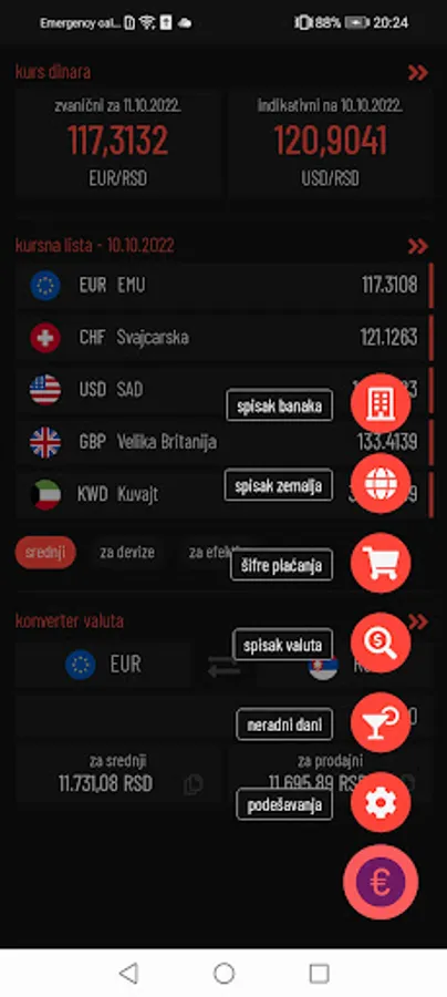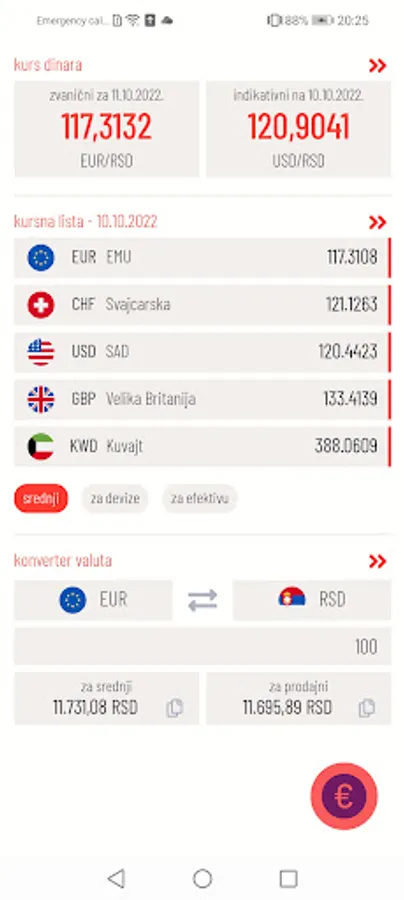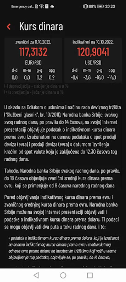 NOTE: Data on the dinar exchange rate, exchange rate list for foreign currencies and other data are not available if the mobile device is not connected to the Internet.