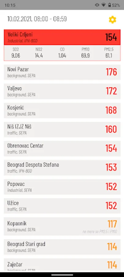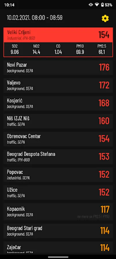 The application shows the results of automatic air quality monitoring, in real time, from the state and local networks from the territory of the Republic of Serbia. Information for 58 sites is provided by the Environmental Protection Agency. Air pollution data is updated every hour.
