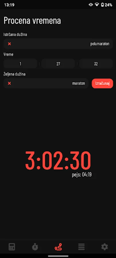 - Moguće je izračunati dužinu, vreme ili pejs (pace) na osnovu druge dve informacije.