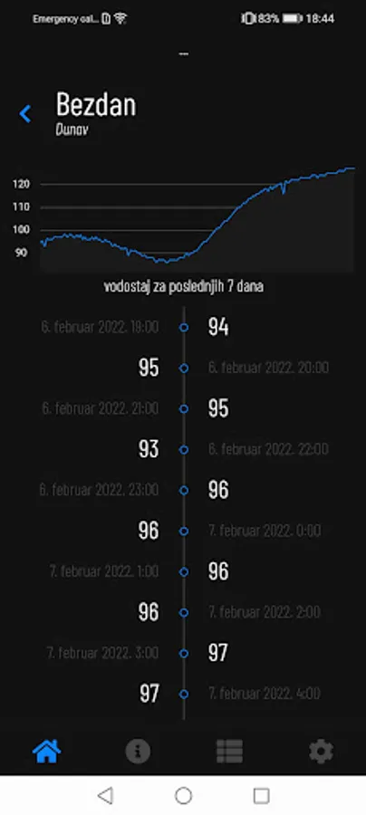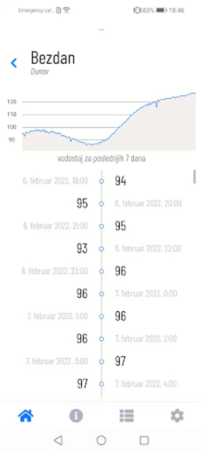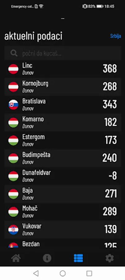 - water level for the current day for the Danube, Tisza, Sava and Morava