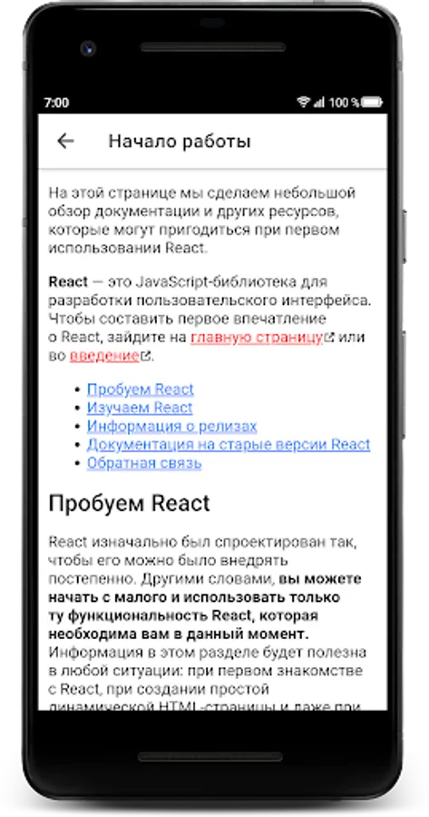 This application presents a collection of documentation on the most popular technologies in the frontend direction. The application is still under development, so not all articles are available yet.