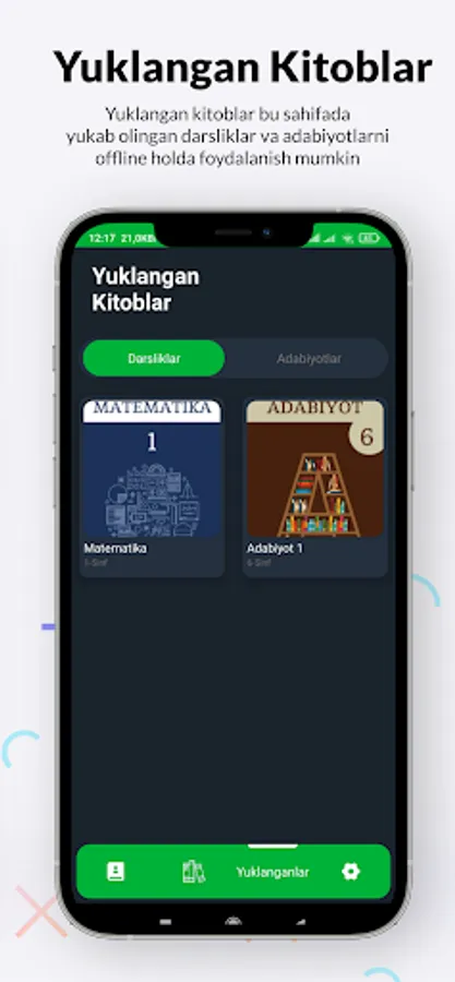 - Kitoblarni yuklab olish va offline(internetsiz) holda o'qish imkoniyati