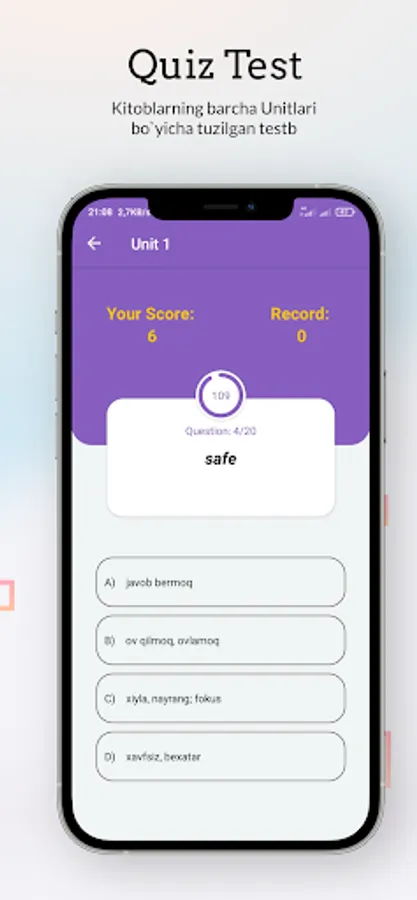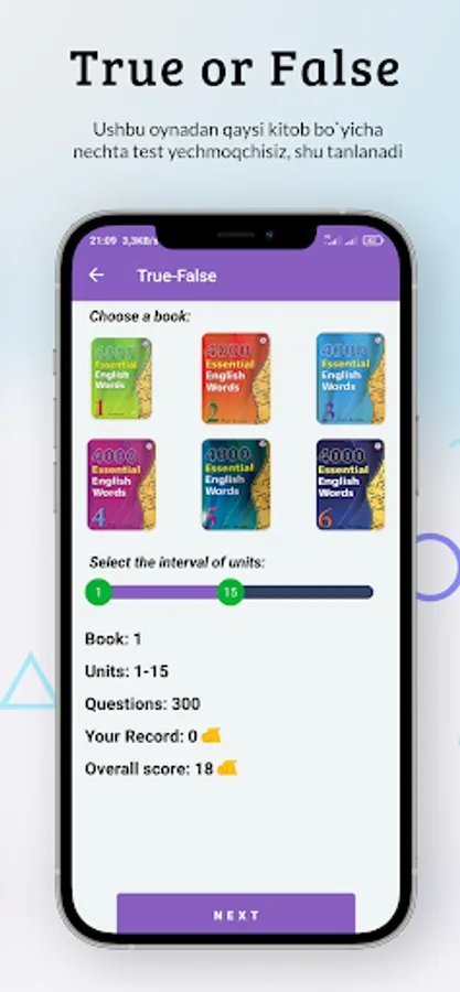 Essential Book & Game ilovasi "4000 Essential Words" kitoblarining barchasi, Kitob ichidagi So`zlarning o`zbek tilidagi tarjimasi hamda shu so`zlar yuzasidan testlar to`plami