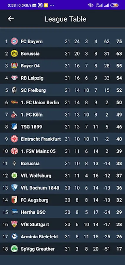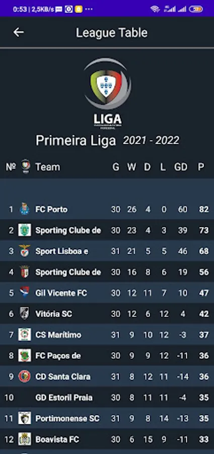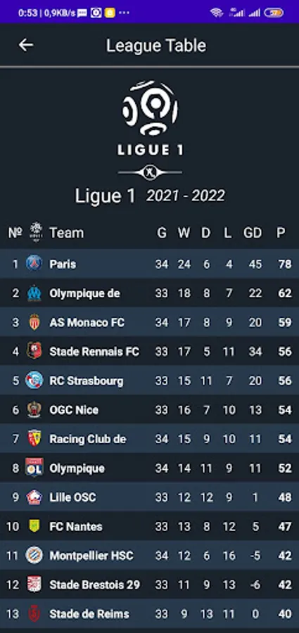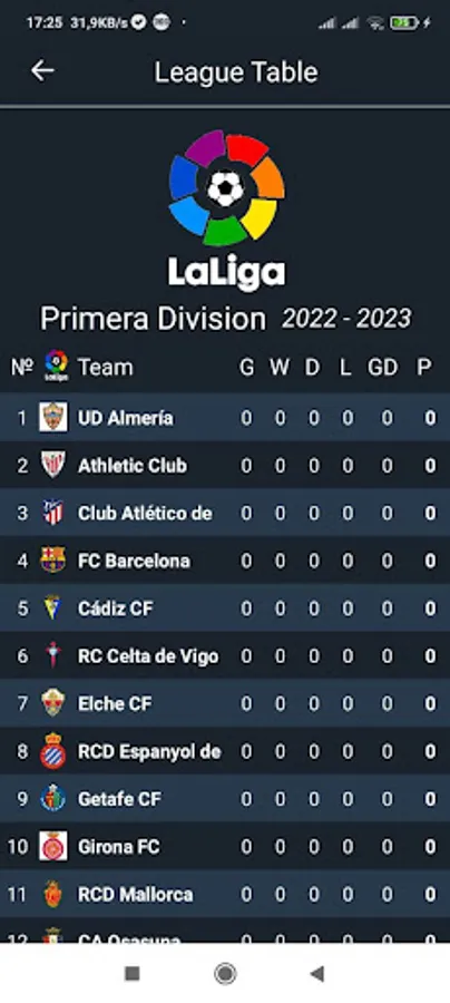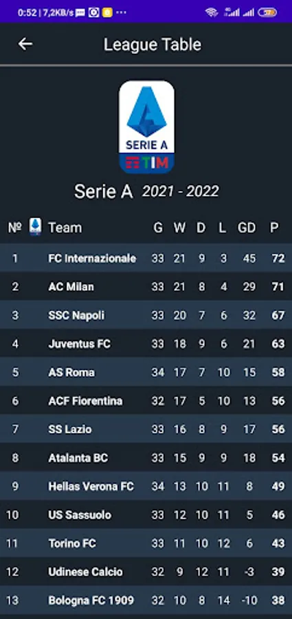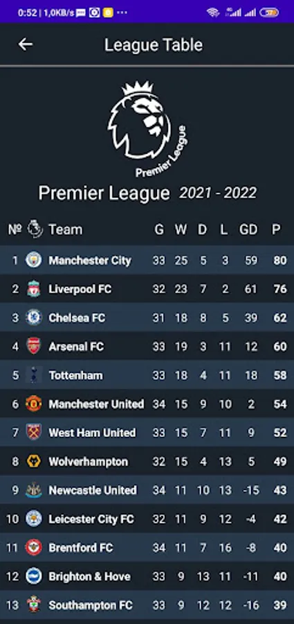 - live table for the most popular football leagues