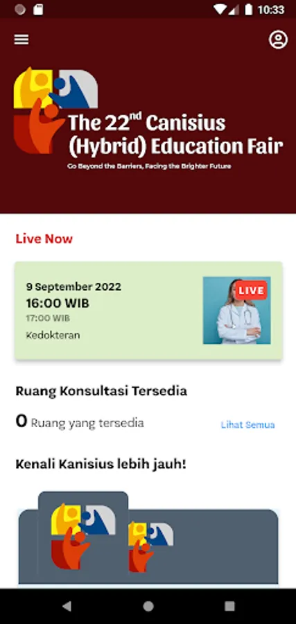 The official app of The 22th Canisius Virtual Education Fair 2022 is your co-pilot to take part in the Education Fair offered by Kanisius College High School remotely. Through this application, you can: