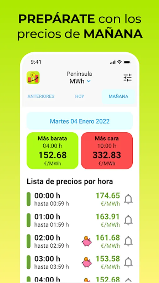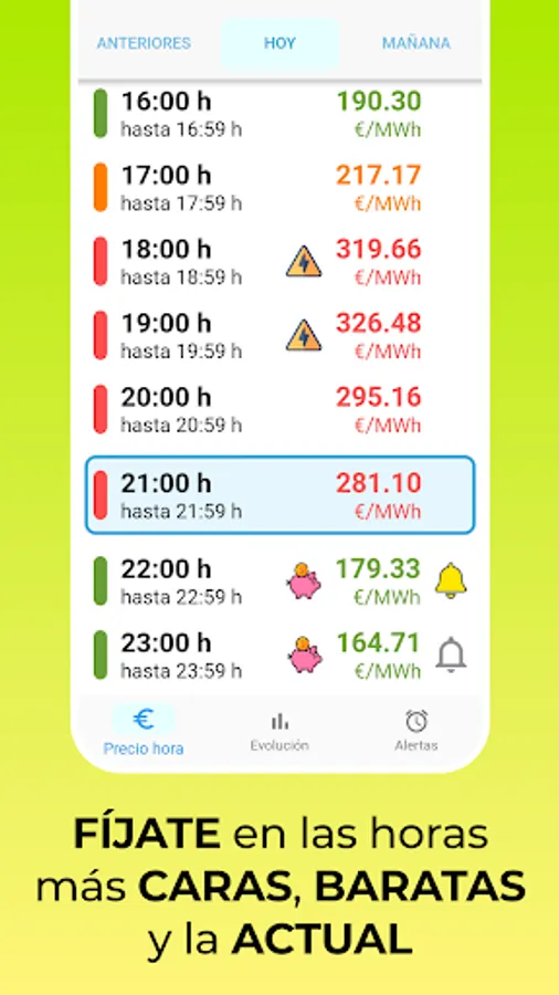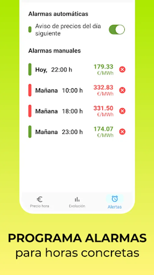 You will also be able to set up a daily alert when tomorrow's prices are available. So you can plan the next day with alarms.