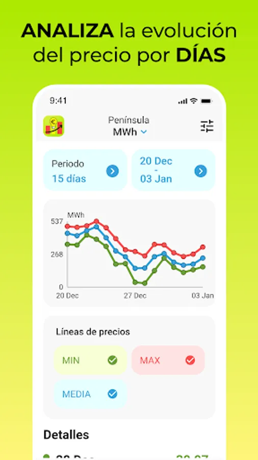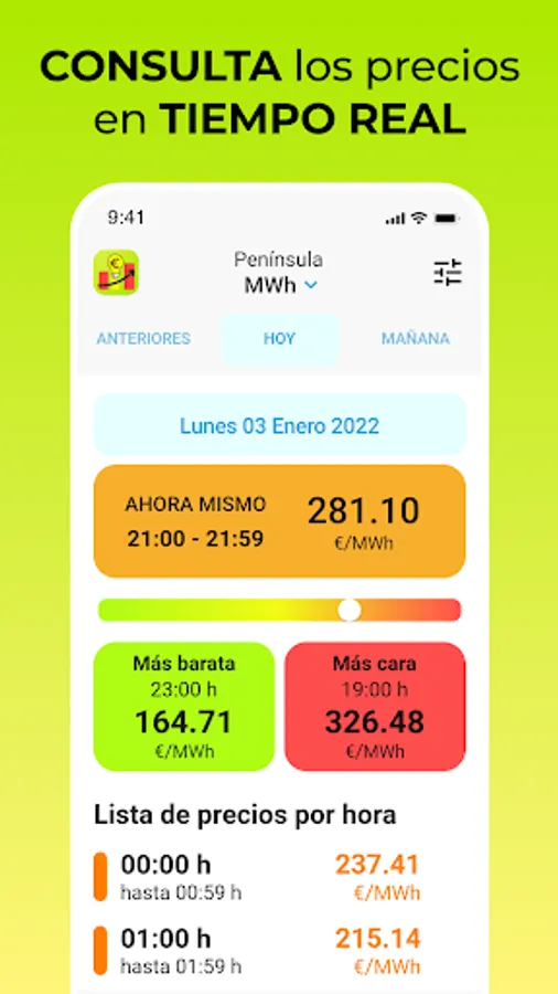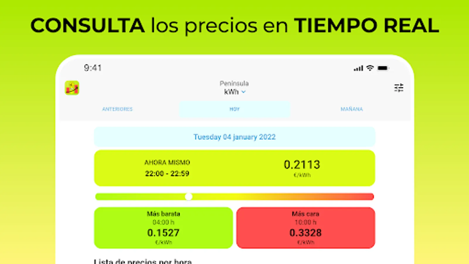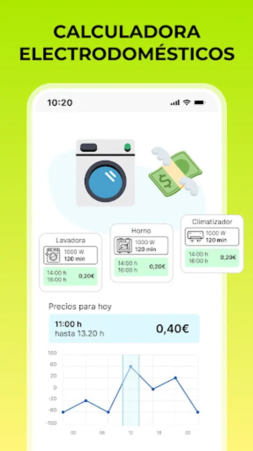 Know how much it costs you to use your appliances depending on their power, the time of use. So you can know how much money it costs you to put the washing machine or use the oven. You can see which time ranges cost you less to turn on your appliances and adjust your consumption.