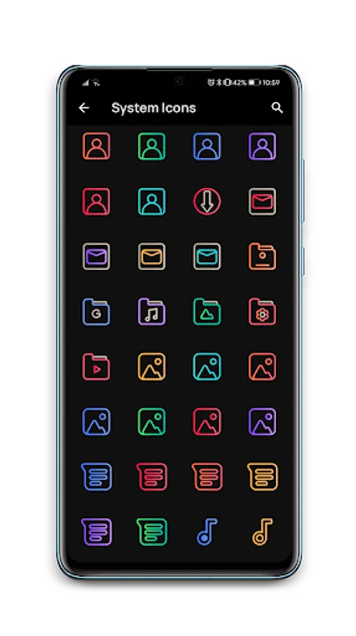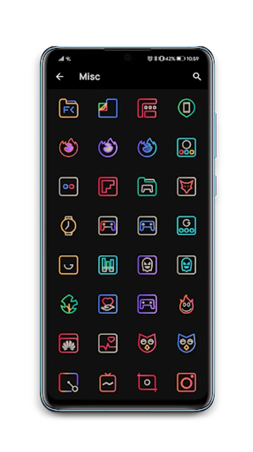 Minimalistic and elegant icon pack with neon style and gradient lines. Made for your customizations!