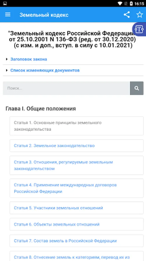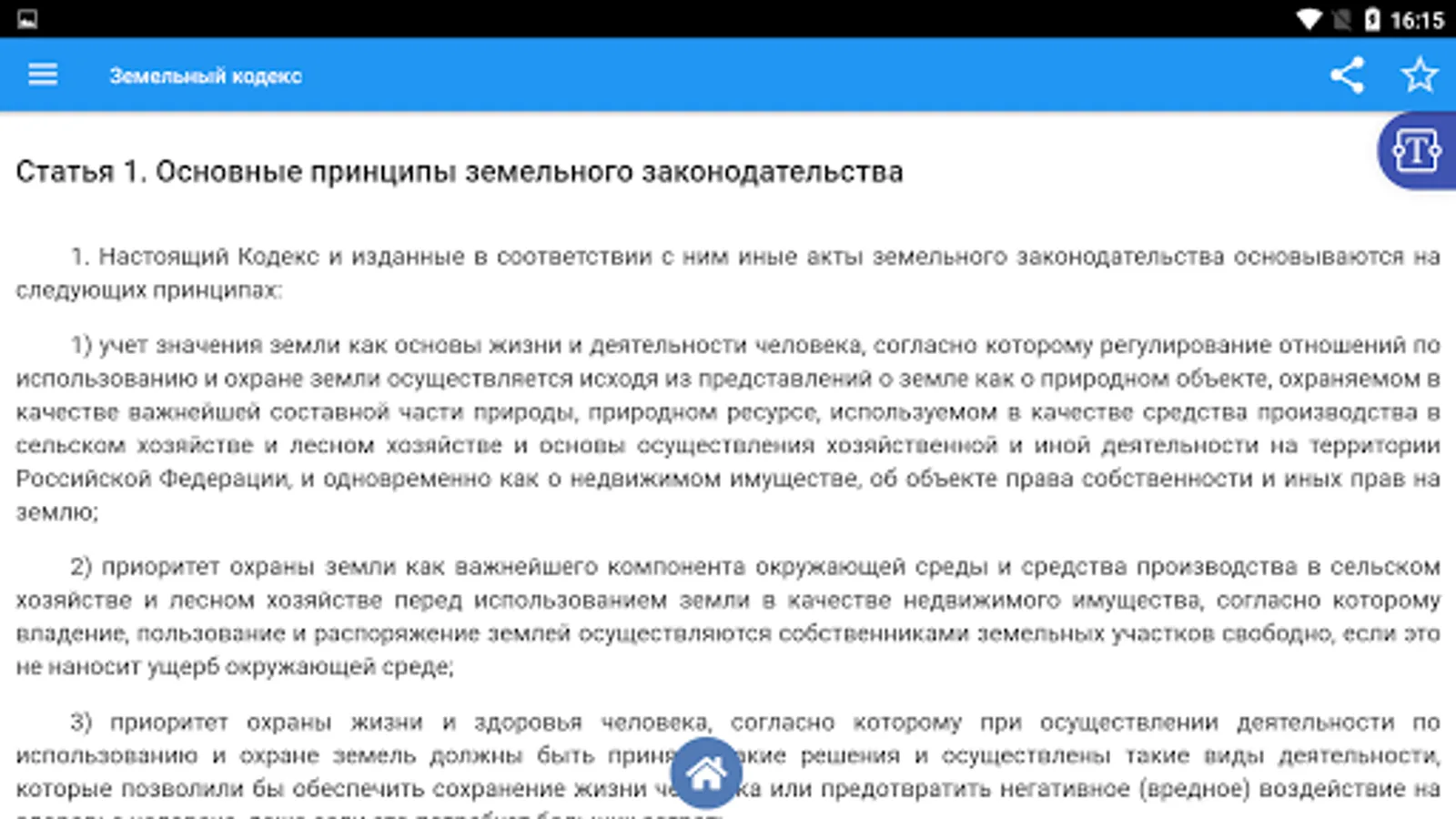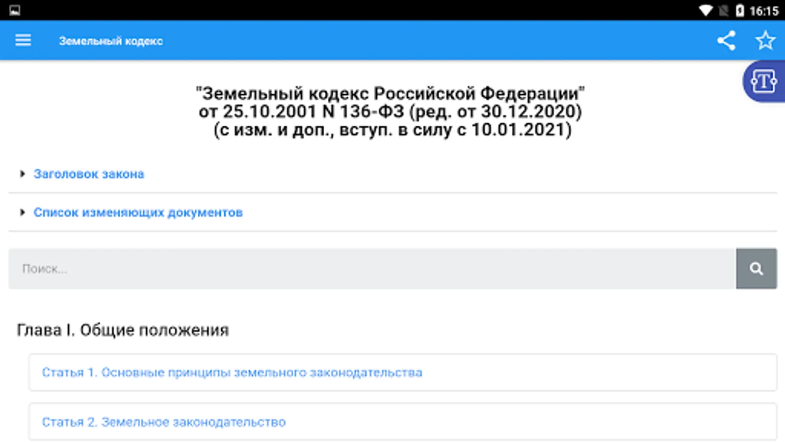 The Land Code of the Russian Federation (RF LC) is a codified normative legal act that is the main source of land law in Russia. Consists of 19 chapters and 107 articles.