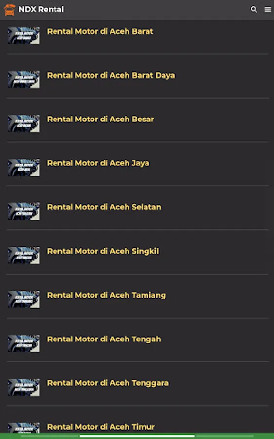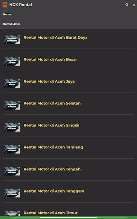 NDX-Rental is an application that provides the most complete listing of motorized vehicle rental information, both 2-wheeled and 4-wheeled in Indonesia.
