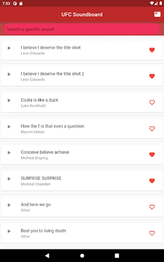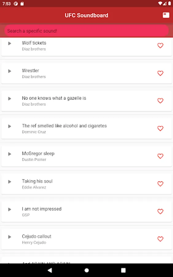 Fully updated and categorised soundboard consisting of many Ultimate Fighting Championship fighters. All rights go to the Ultimate Fighting Championship.