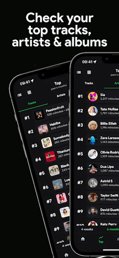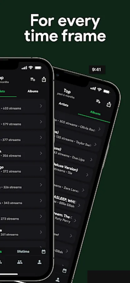 Note: Some mentioned features require a one-time import of your lifetime streaming history, Spotify is a trademark of Spotify AB. Spotistats is in no way affiliated with Spotify AB.