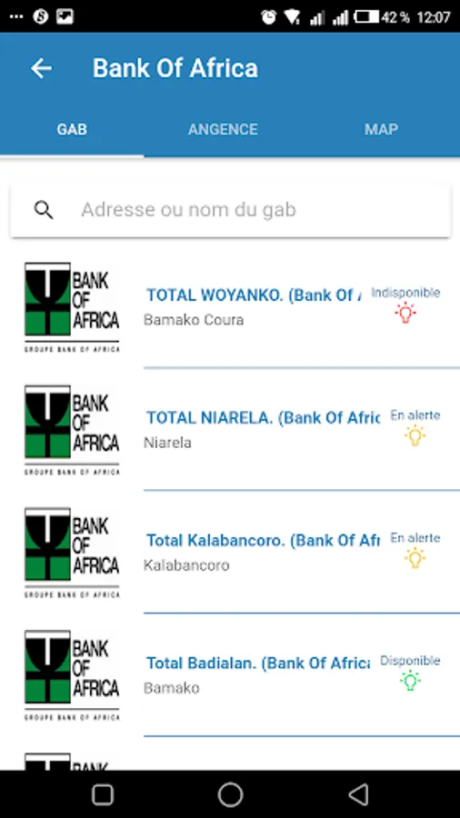 Next ATM is the mobile application that reduces unitiles trips to tour the city in search of ticket dispenser available and running. Next With ATM, be notified as soon as an ATM falls pane. Next ATM allows you to report the unavailability of a window at all your compatriots who install the application. Next ATM will put all your reporting on alert (Yellow) will mean an ATM user passed the ATM found in problem state, so to avoid the visit unitile by another user, it simply puts into state 'alert. Next ATM will display all ATMs unavailable reported by agencies of the bank they even unavailable state (red) and a notifcation is sent to all ATM user who installed next ATM. Next Gab also lets you see the ATM of your city on Google Map as well as the agency. Next ATM allows you to directly contact an agency by number without dialing.