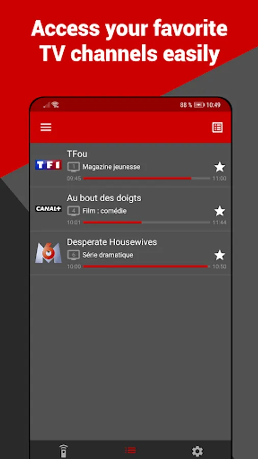 Pilot your Freebox TV from your phone. This Freebox remote control is simple, complete and ergonomic.