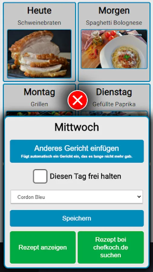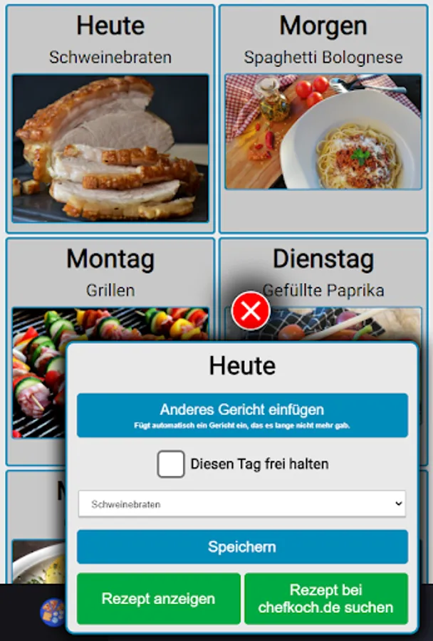 The app automatically searches for dishes that you haven't eaten in a long time and suggests them.