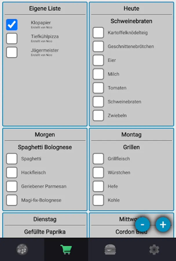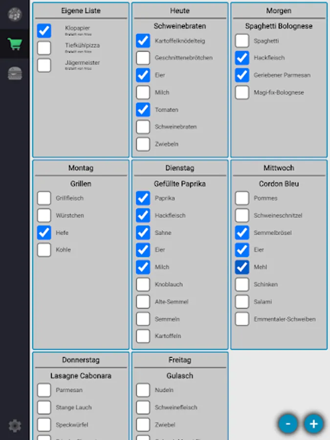 The whole family can join together to plan and shop together! Each family member can modify the menu and add new items to the shopping basket.