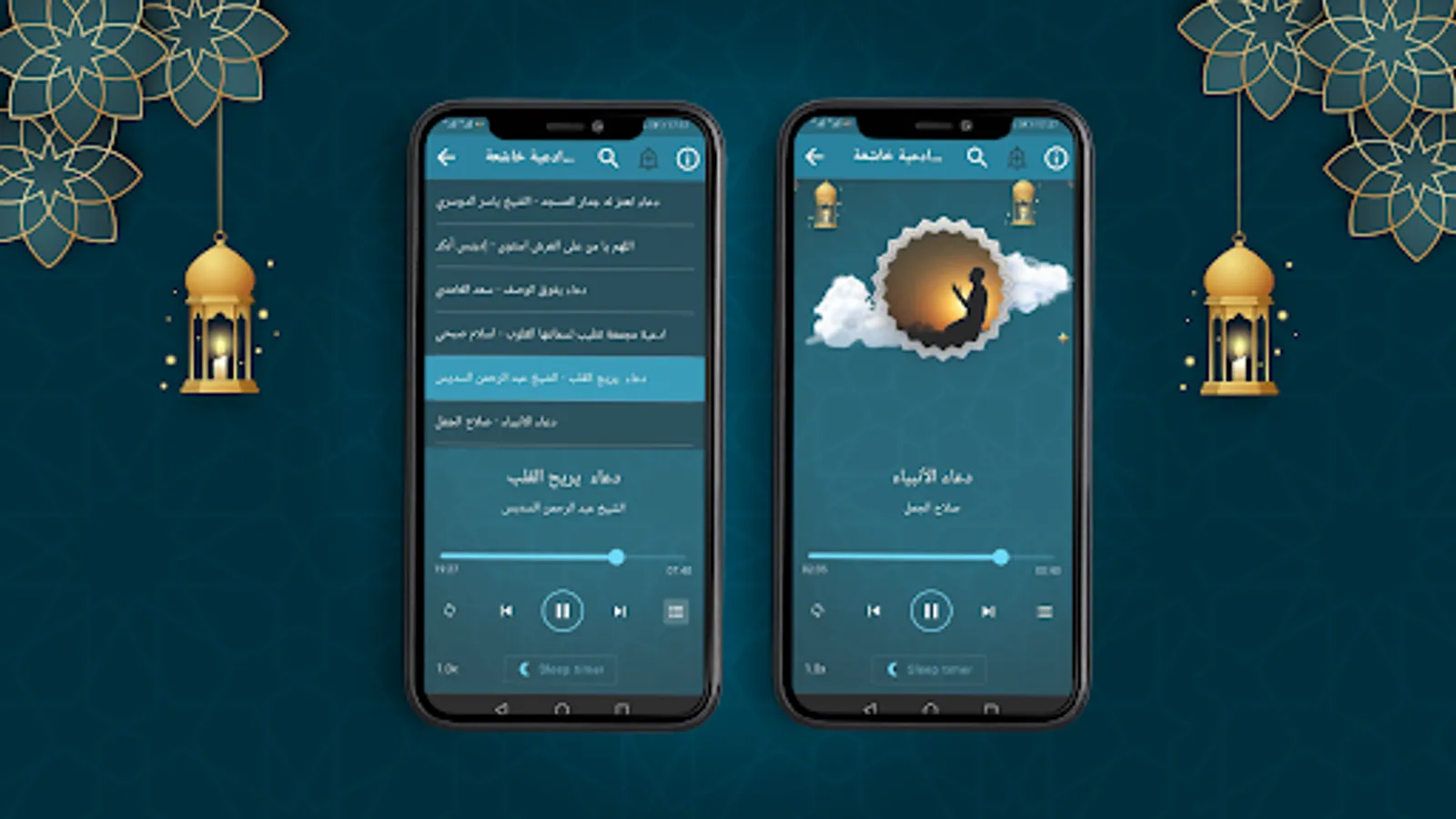 By pressing the (Next) and (Previous) buttons, you can browse all the audios you want, and the program of humble supplications that comfort the heart without the internet will also show you the duration of each clip so that you are aware of this.