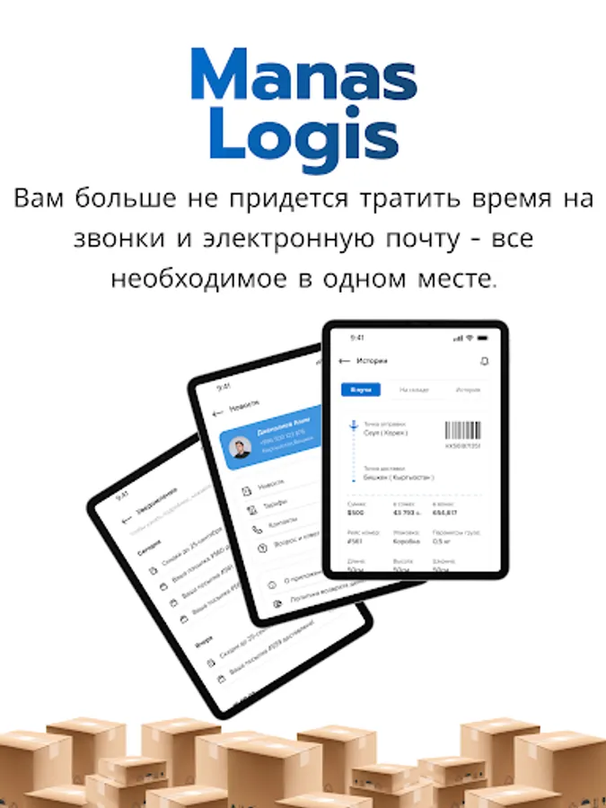 Our mobile application "Manas Logis" is an additional tool to ensure the quality of our services. It provides round-the-clock communication with our customers and raises the quality of our services to a new level.