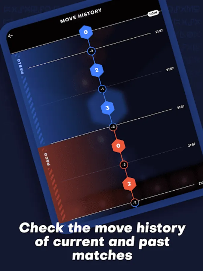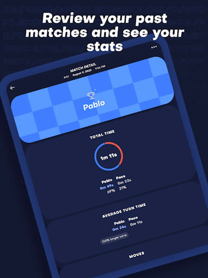 Review all your moves in a current or past match with the Match History feature. Quickly view at all the important stats of a match, like average turn duration by player, or memory used. The moves are also timestamped and color coded for a more easy review of what happened at every match you played.