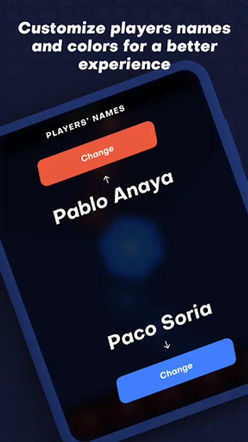 You can choose player names and colors to make it yours while playing. Are you playing a yellow deck against a red deck? Choose red and yellow in the initial settings to make your game yours.