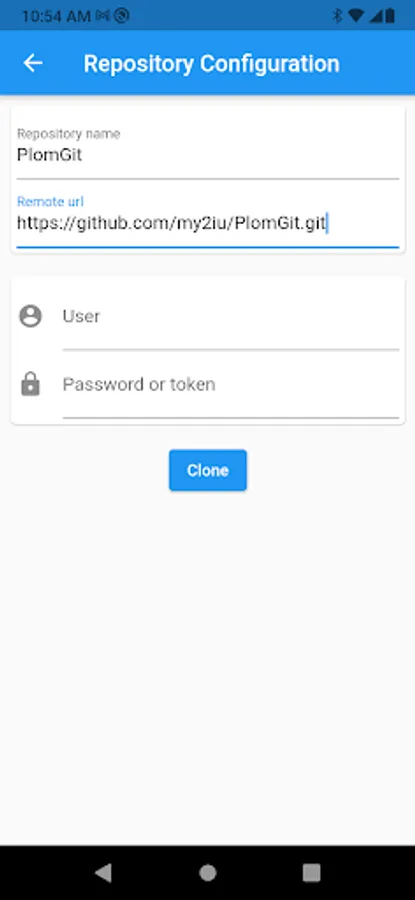Note: When using PlomGit with GitHub, you cannot use your normal GitHub password with PlomGit. You must go into the settings of the GitHub website and generate a Personal Access Token that PlomGit can use instead.