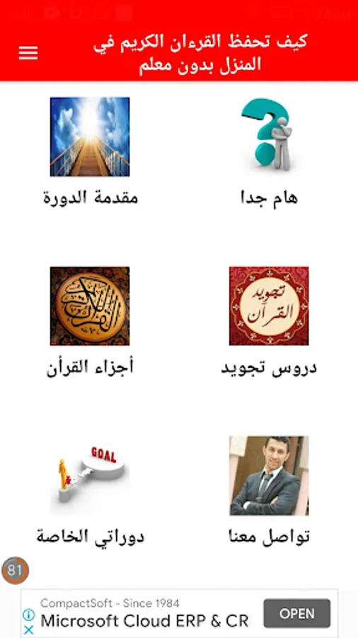 1- Teaching and memorization videos for all pages of the Qur’an in order. The provisions of intonation of the Holy Qur’an are explained with the trainer Karim Attieh