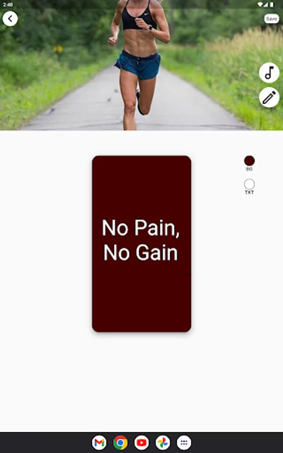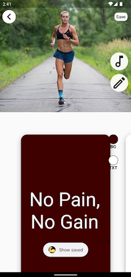 Pumped is a motivational app that empowers you to create motivation. Create slides using text, images, and music (must have Spotify premium) that help you focus on your vision for whatever you're doing.