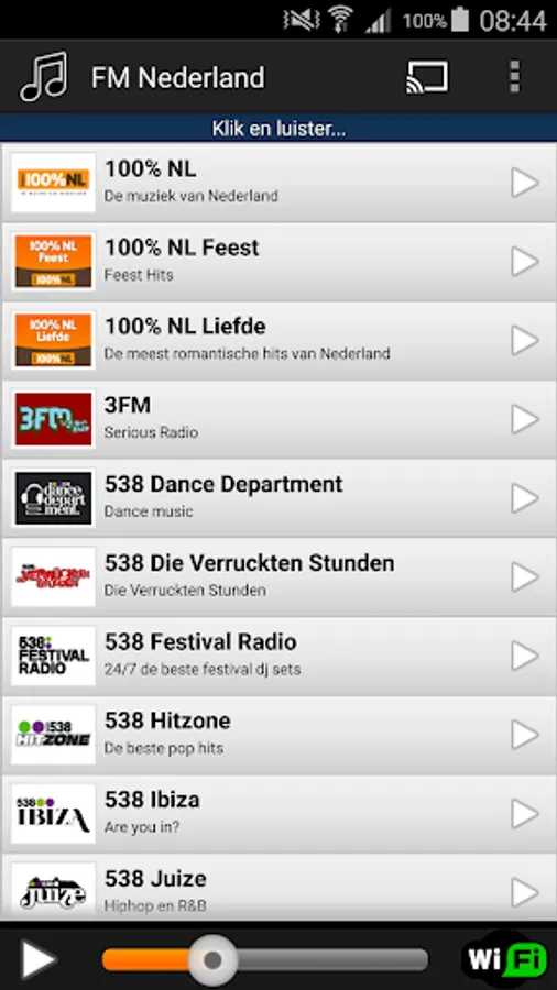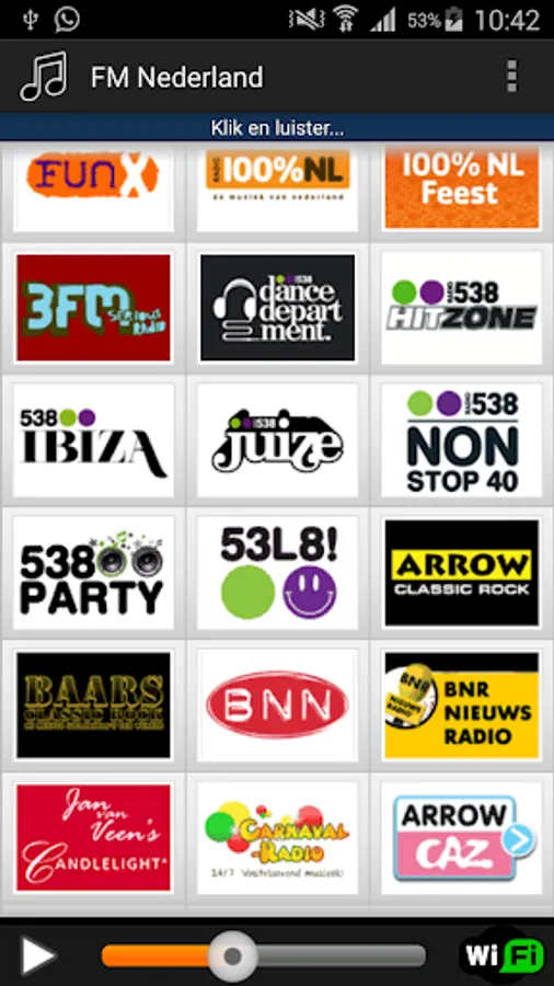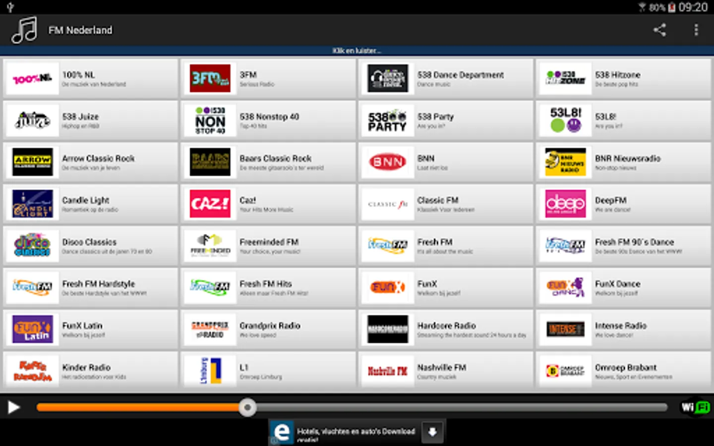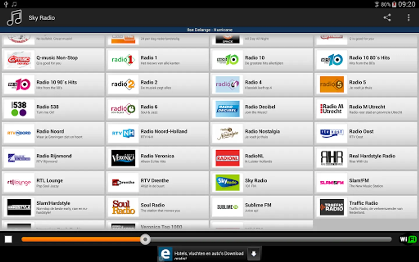 Listening to: 3FM, Qmusic, Radio Veronica, Radio 538, Sky Radio, Slam !, Veronica Hitradio, Arrow Classic Rock, 100% NL, Radio 2, Sublime FM, Caz !, Fresh FM, Slam! Juize, RadioNL, Sky Radio LoveSongs, Radio 1, Radio 10, Radio 10 80´s Hits, Penguin Radio, 538 Nonstop 40, 538 Dance Department, 538 Hitzone, Veronica Top 1000 All times, Candle Light, Radio Decibel, Disco Classics, BNR News radio, Children's Radio, FunX, Radio 4, Radio 5, Radio 6, Radio 10 90´s Hits, Sky Radio SummerHits, Pure NL, Hardcore Radio, Wild FM, Nashville FM, Omroep Brabant, Omroep Flevoland, Omroep Gelderland, Omrop Fryslân , Omroep Zeeland, RTV Drenthe, Radio Caramba, Veronica Rock Radio, FunX Dance, FunX Latin, Soul Radio, ZAP! FM, XTRARADIO, Radio Continuous, Grandprix Radio, RadioHollandOnline, XRADIO, Baars Classic Rock, Intense Radio, Your FM, 538 Die Verruckten Stunden, Traffic Radio, Radio Noord-Holland, Q-Dance, Slam! Hardstyle, RTL Lounge, Qmusic Non -Stop, Radio Noord, 538 Party, Classic FM, L1, Radio Rijnmond, Freeminded FM, DeepFM, Radio M Utrecht, Radio East, Real Hardstyle Radio, 538 Ibiza, Qmusic Het Foute Uur, Radio 10 Summer Hits, 100% NL Party , Radio 10 60`s & 70`s Hits, Disco Classic Radio, Hi On Line Radio, Radio West, 538 Global Dance Chart, 100% NL Love, QXRadio, Dutch Beats Radio, Great News Radio, Bright.FM, Dolphin FM , Paradise FM, Qmusic Classics, Simone FM, 40UP, Radio Dolfijntjes and SterrenNL.