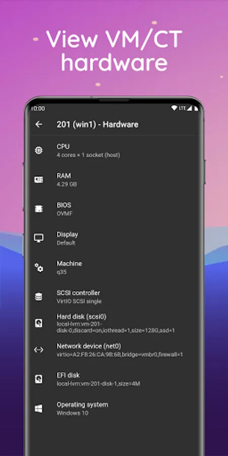 • View VMs' and containers' (virtual) hardware.