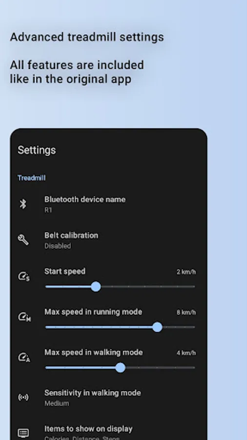 Warning: App is built for the R1 Pro and R2 versions! Work with other treadmills is not guaranteed.