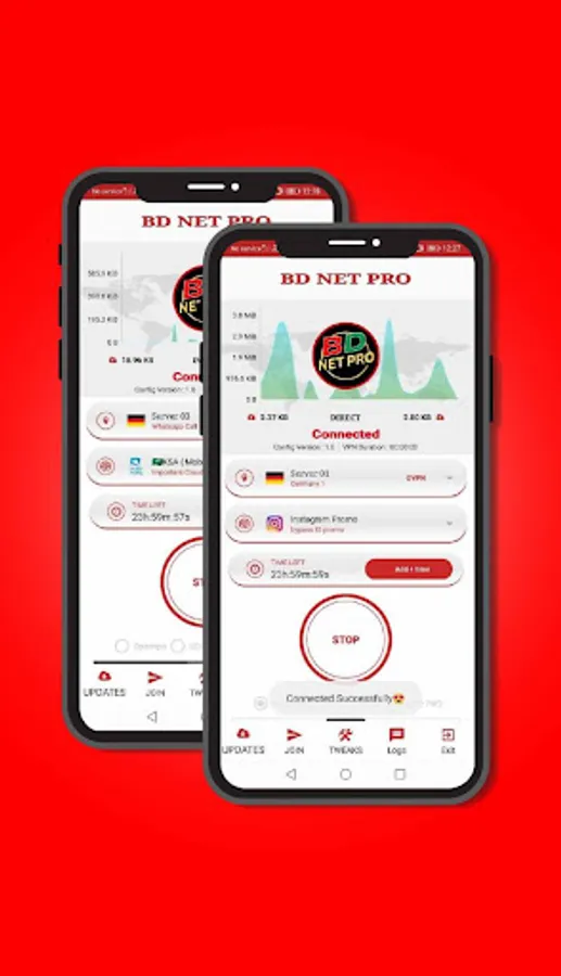 BD NET PRO is a high-quality VPN app designed to keep your online activities private and secure. With support for OPENVPN, SSH, UDP, and UDP through OPENVPN, you can rest assured that your internet traffic will be encrypted and protected from prying eyes.