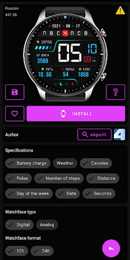 You can buy a subscription and remove ads in the app 🚫You can send your favorite watchface to Favorites by clicking on the heart next to this watch face, and then view it by clicking on the heart in the bottom menu🤍 You can see the Top 50 installed watchfaces - per week, per month and during all time🔝 You can also filter the watchfaces by the necessary parameters that you want to be displayed on the watchface🔍 You can sort the watchfaces by the date they were added or by the number of installations 📶 And you can also select the watchface language 🌐 And lastly. There are some additional features under the three stripes icon in the lower left corner that you might find useful, so take a look☺️