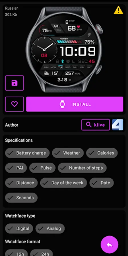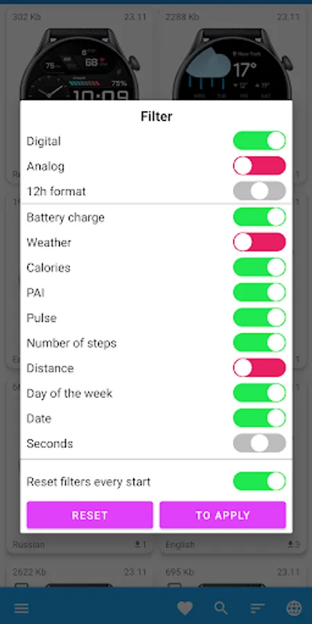 You can buy a subscription and remove ads in the app 🚫You can send your favorite watchface to Favorites by clicking on the heart next to this watch face, and then view it by clicking on the heart in the bottom menu🤍 You can see the Top 50 installed watchfaces - per week, per month and during all time🔝 You can also filter the watchfaces by the necessary parameters that you want to be displayed on the watchface🔍 You can sort the watchfaces by the date they were added or by the number of installations 📶 And you can also select the watchface language 🌐 And lastly. There are some additional features under the three stripes icon in the lower left corner that you might find useful, so take a look☺️