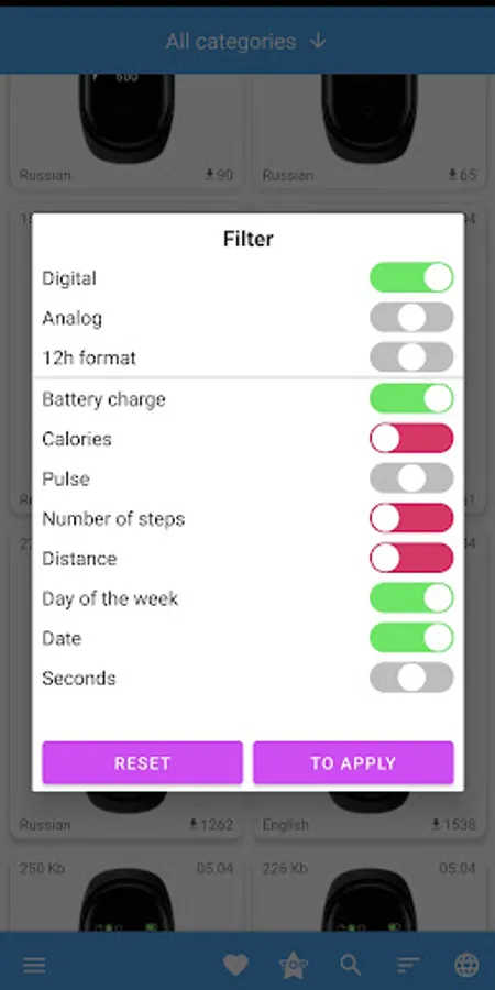On the top menu, you will be able to find WatchFace Categories by topic. Absolutely all watchfaces are divided into categories, which makes it easy to find watchfaces on the desired topic 💕