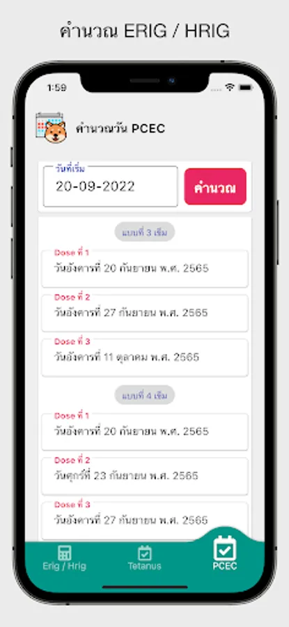 Volume and date calculator For Immunoglobulin After Rabies Exposure ERIG, HRIG, PCEC, Tetanus Toxoid