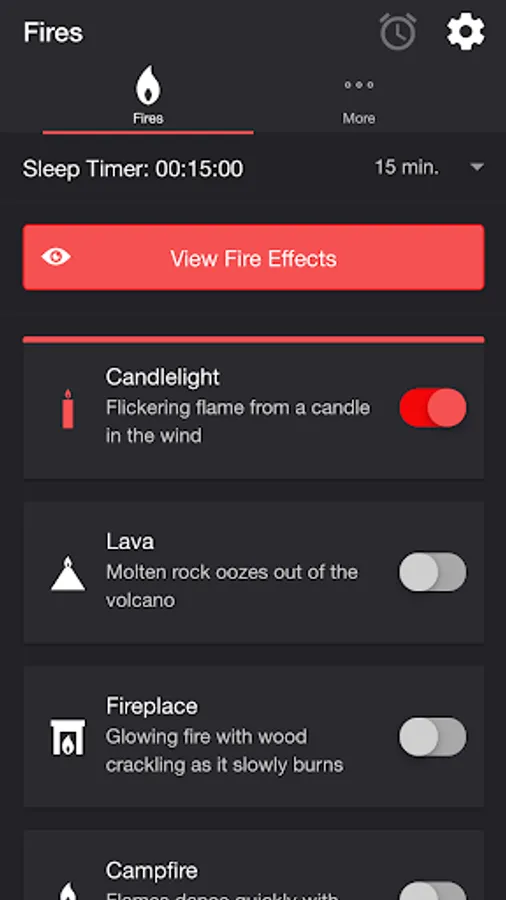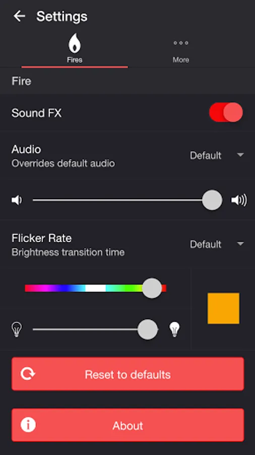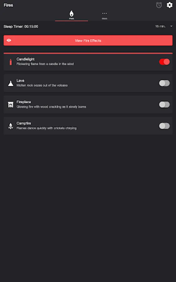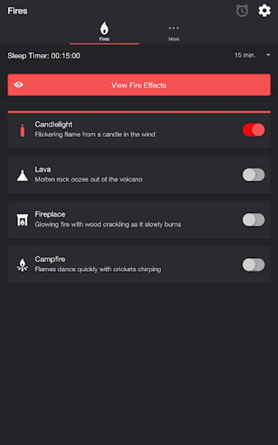 Set the mood using your smart device. The screen glows and flickers to the sounds of a fire.