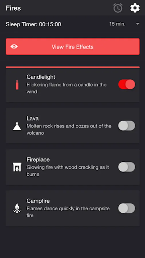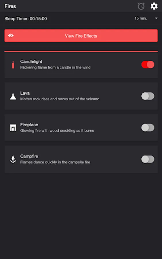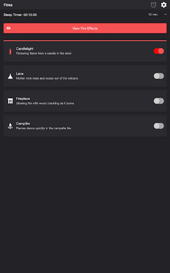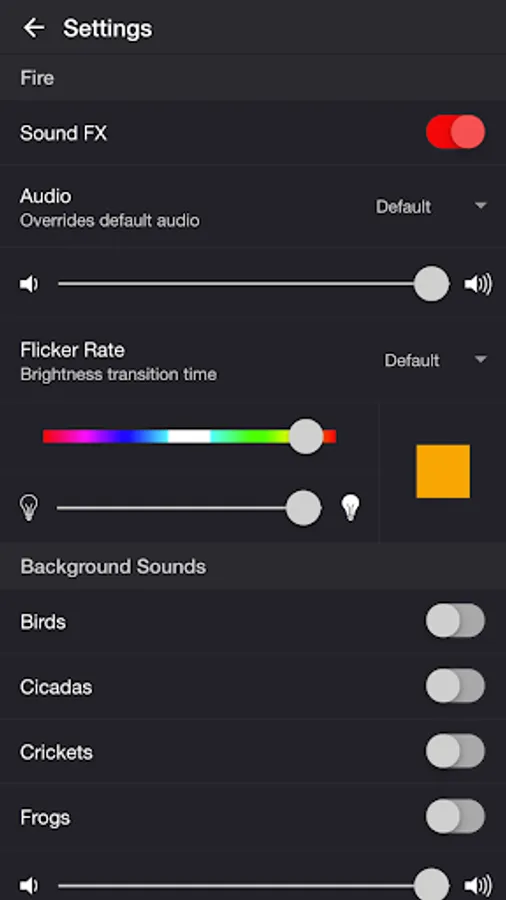 Set the mood using your smart device. The screen glows and flickers to the sounds of a fire.