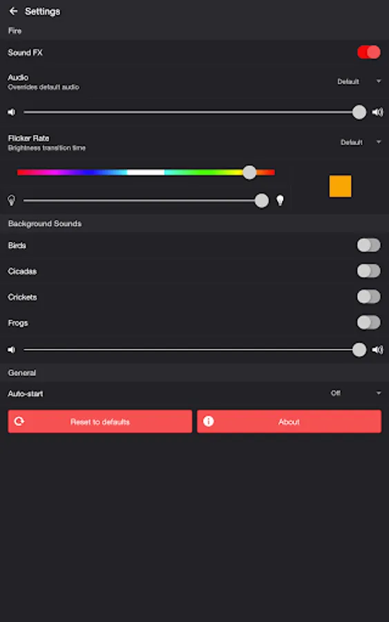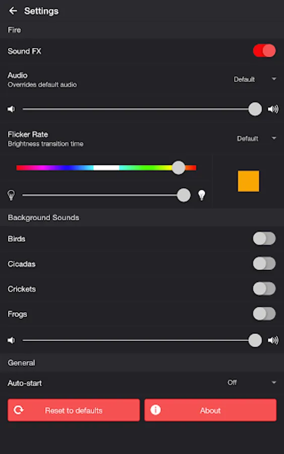 • Toggle background sounds (birds, cicadas, crickets, frogs)