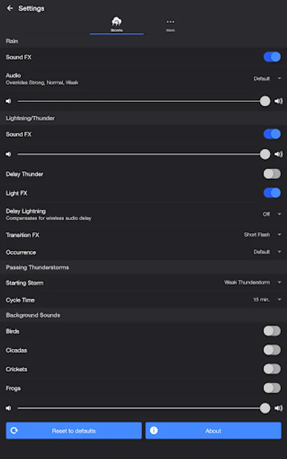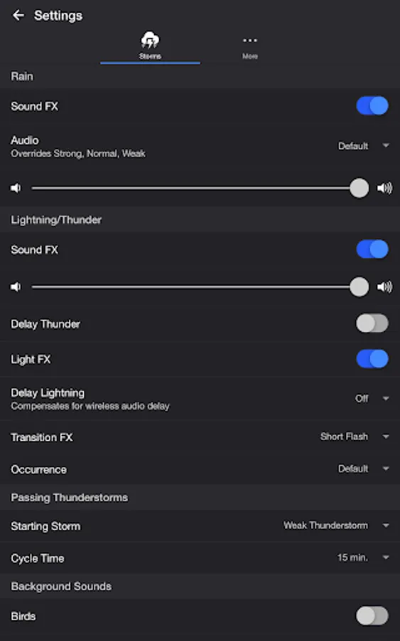 • Toggle thunder sound effects
