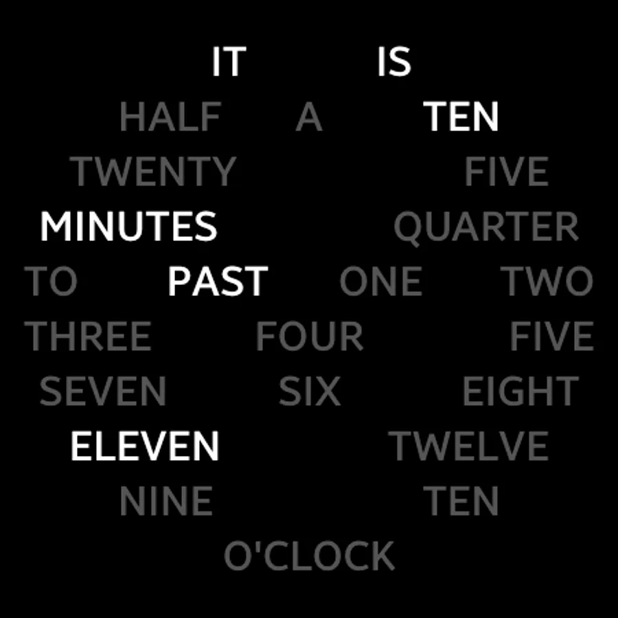 • E.g. 11:12 — IT IS TEN MINUTES PAST ELEVEN