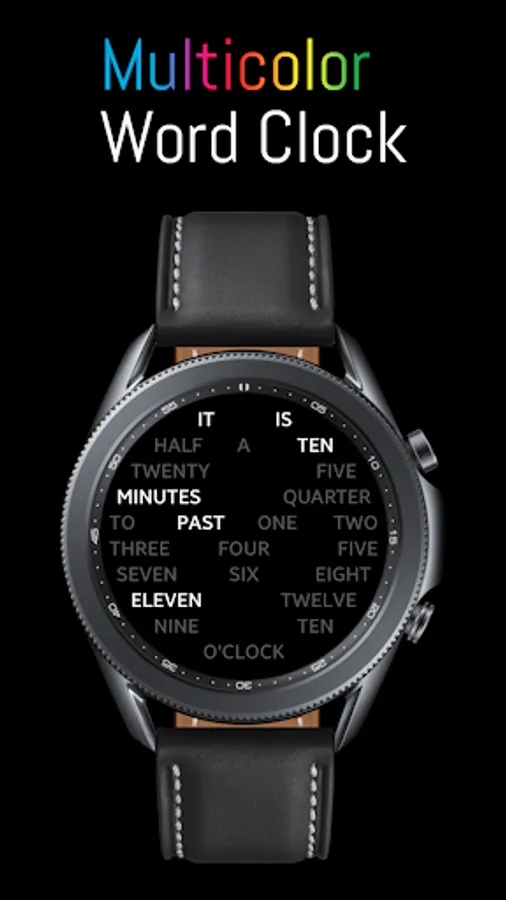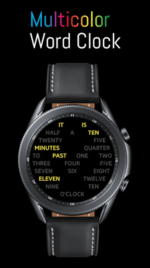 Multicolor Word Clock (Round) is a Wear OS watch face.