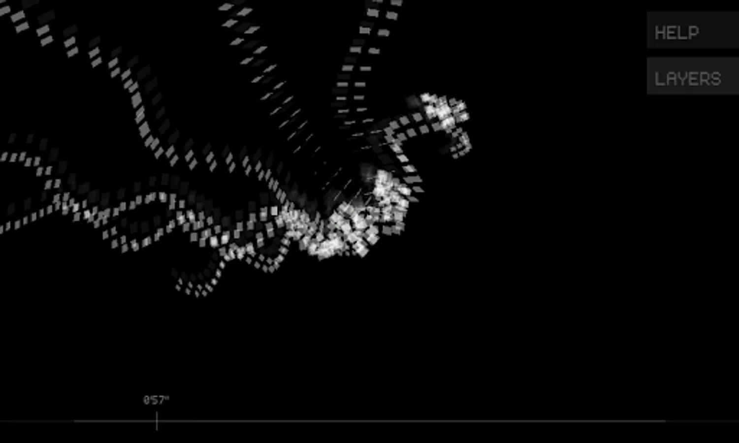 The result is an ever-changing, sculpted constellation of these tiny filter fragments. The visual field is mapped to the sonic structure: filter values, probability intervals and logical decisions are controlling the minimal, pulsating environment thus creating a contemplative, synesthetic experience.