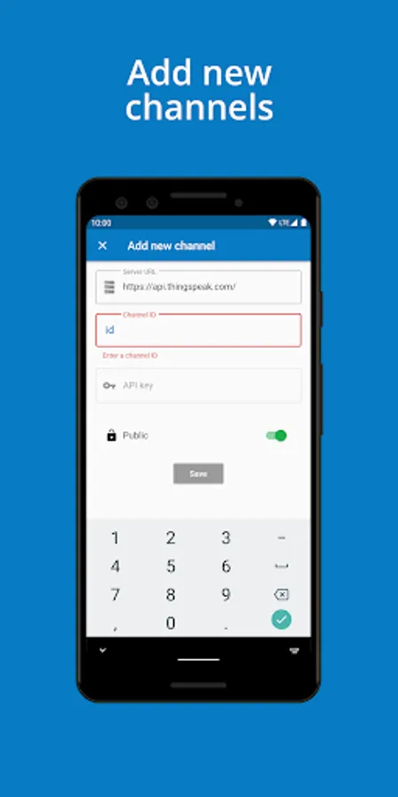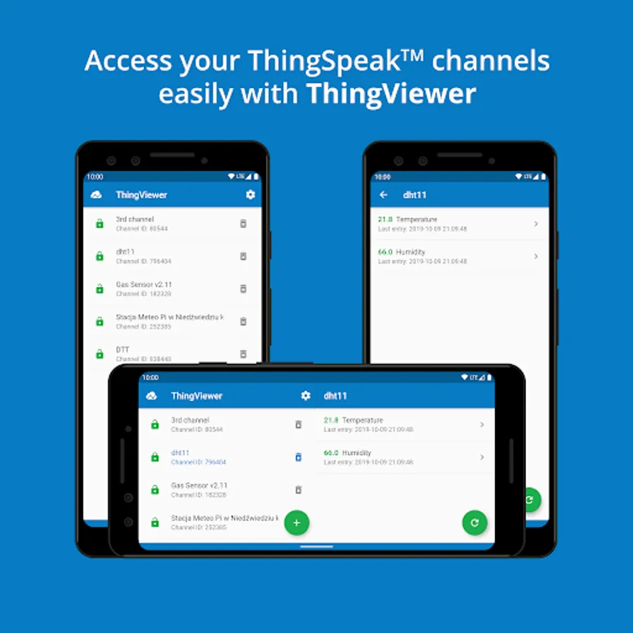 With ThingViewer you can easily access and visualize data from ThingSpeak™ channels. App supports both public and private channels, for private channels you have to provide a "read api key".