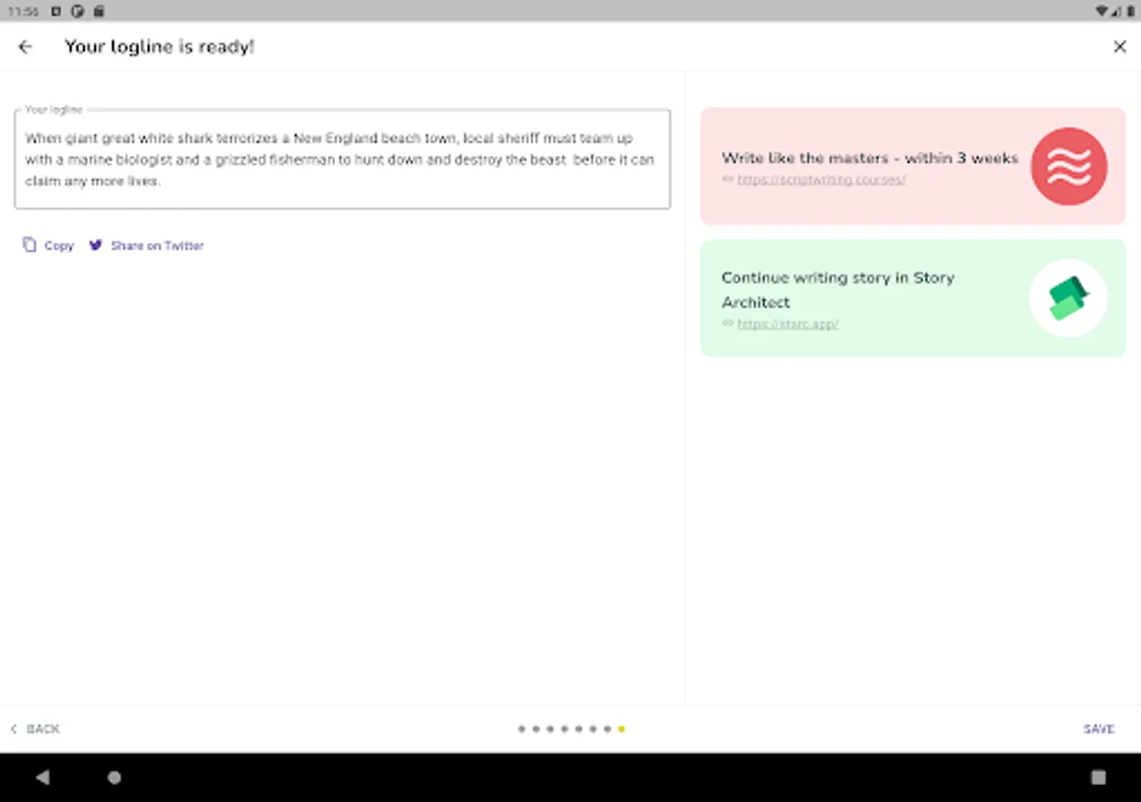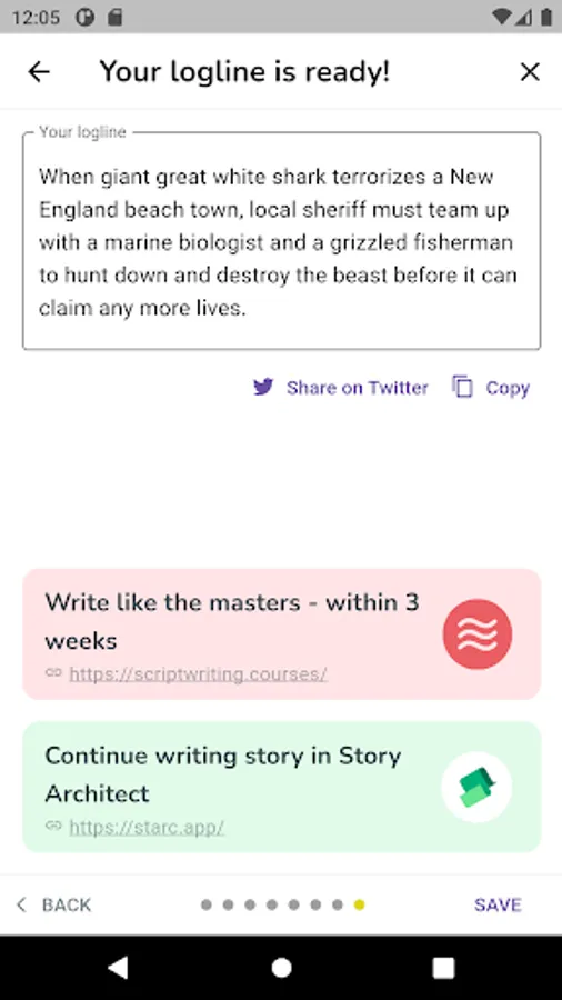 3. Human-Like Precision: Our app intelligently weaves all the crucial story elements together, delivering loglines that read as if crafted by a seasoned storyteller.