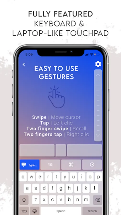 - Keyboard: type or swipe on your android keyboard to send text into your computer.