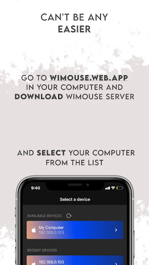 You must install WiMouse Server in your computer. Download it for free at https://wimouse.web.app