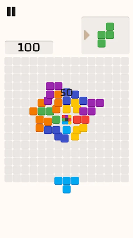 Pieces come from all 4 directions and need to be stacked in the center piece. Once you complete a layer, it disappears. Don't let the stacked blocks reach the edge!