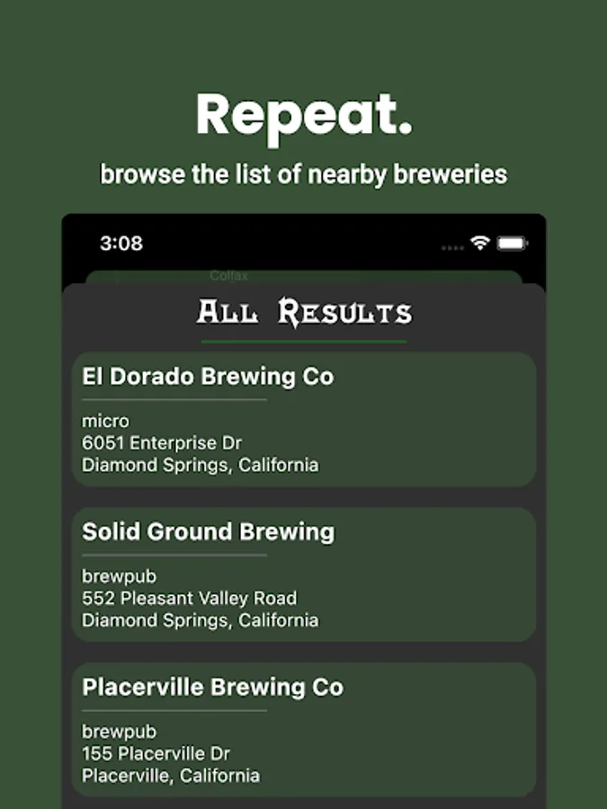 Open the app, search the map, mark your destination, DONE. Simplicity has finally come to the beer drinking community. No bloat, no fluff, just breweries.