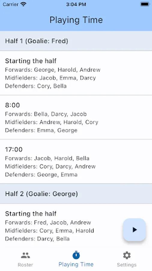 Make rotations easy for your rec soccer team. This app allows you to customize settings to fit your league, then builds a rotation automatically to ensure everyone gets an opportunity to play.