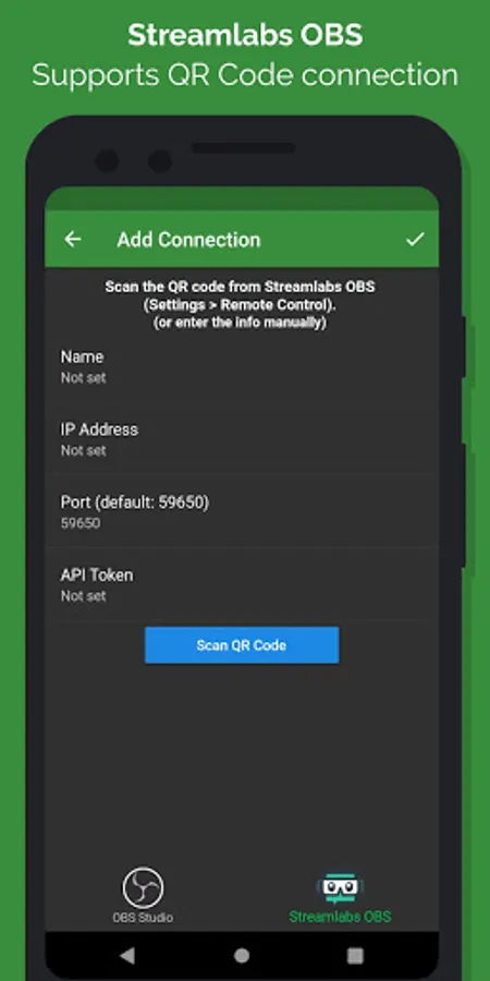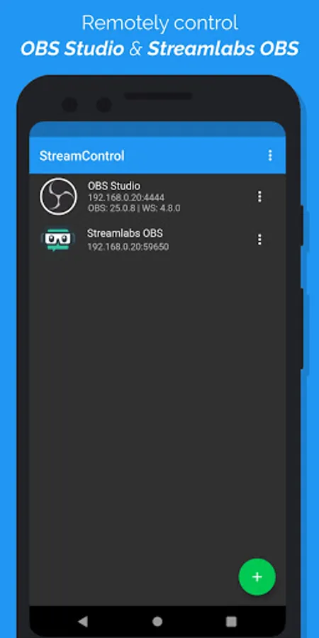This app allows you to remotely control OBS Studio and Streamlabs Desktop from your phone or tablet.